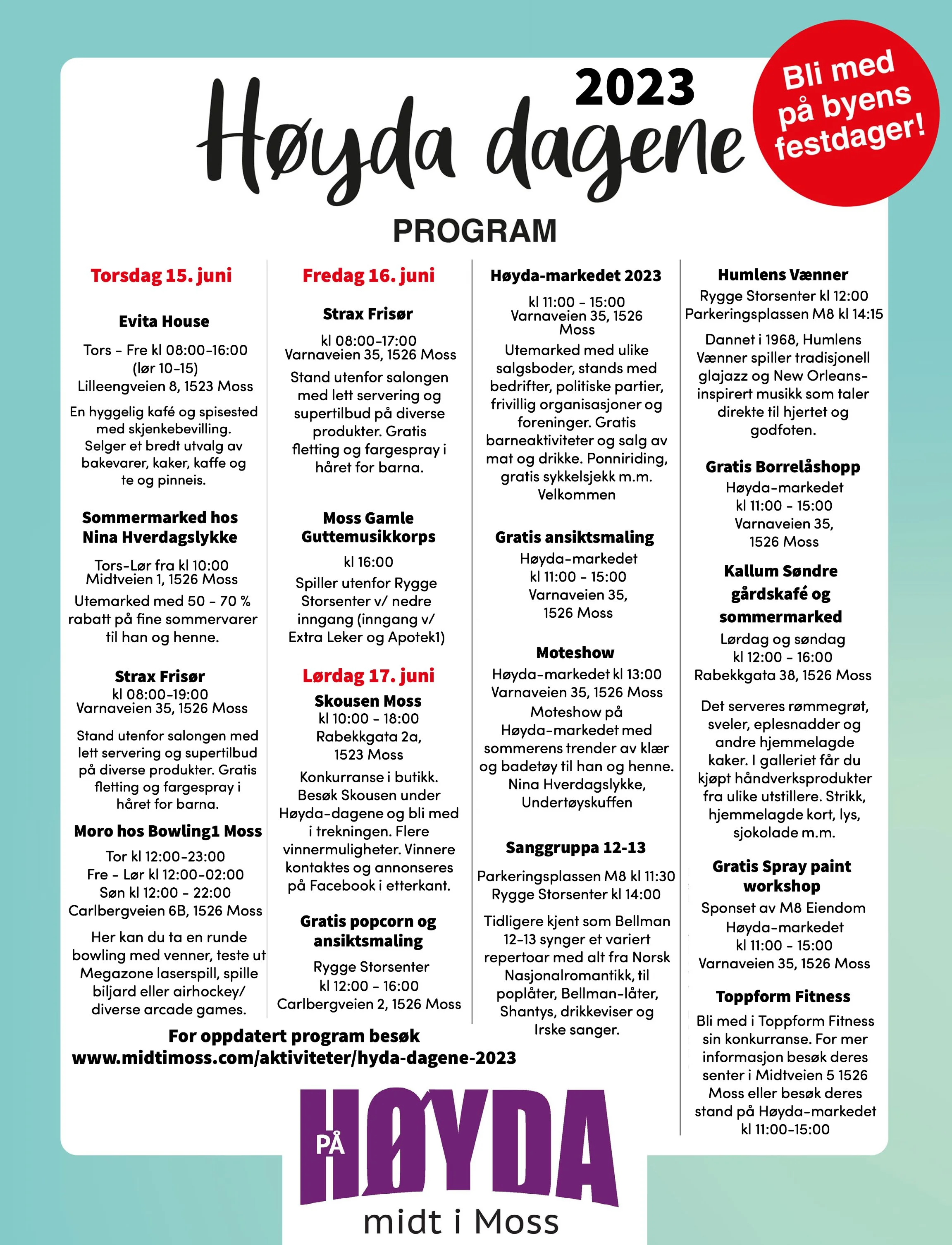 Som en videreføring av Rygge Storsenter sine gla' dager har vi i flere år arrangert bydelsfest på Høyda i form av Høyda-dagene!